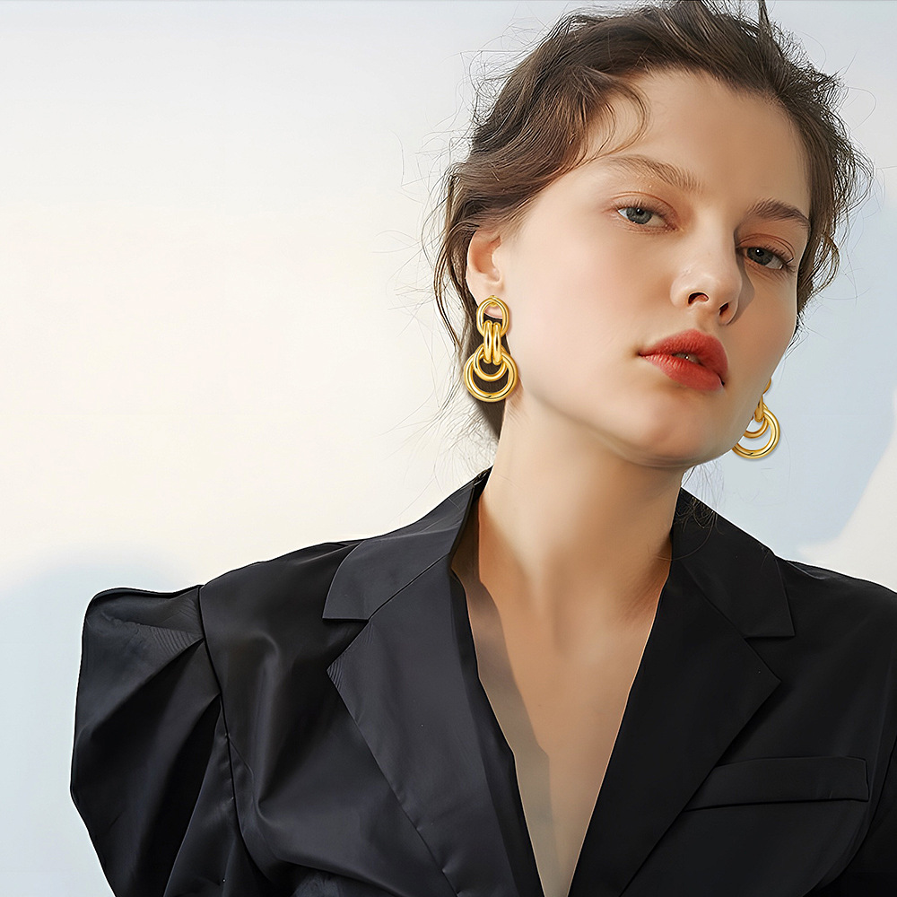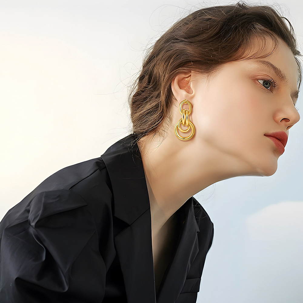Color: two-tone copper tube earrings, white K copper tube earrings, copper tube earrings, EG23053B